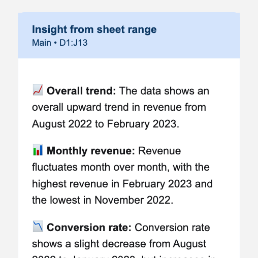 Google Sheets™ add-on to get insights, patterns and tips from your spreadsheets complex data.